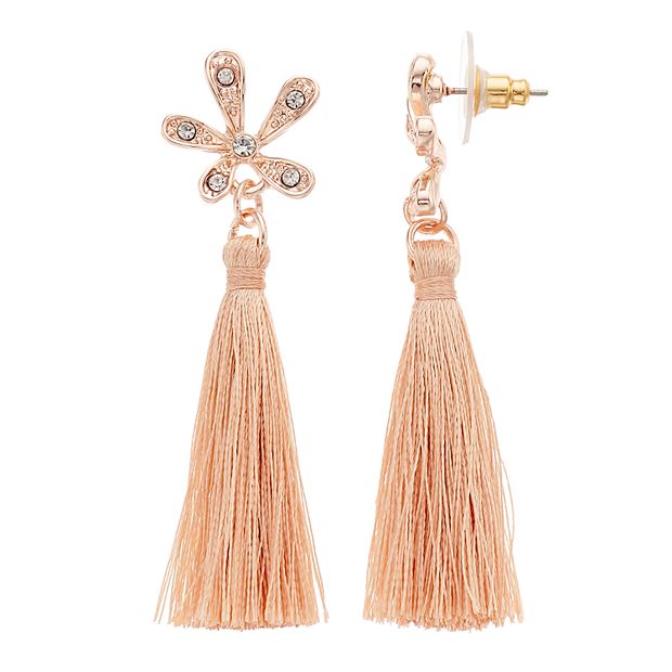LC Lauren Conrad Flower Nickel Free Tassel Drop Earrings Very well made.