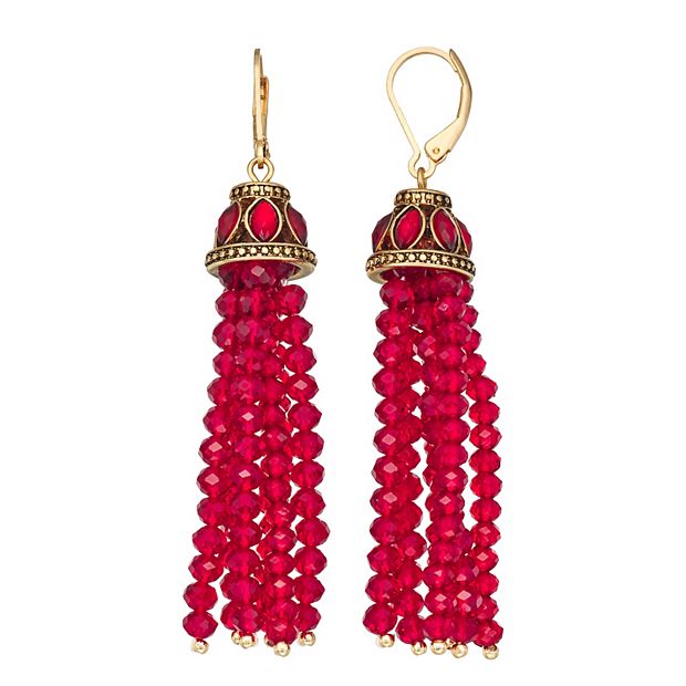 Napier Gold Tone Red Linear Beaded Tassel Earrings Very well made.