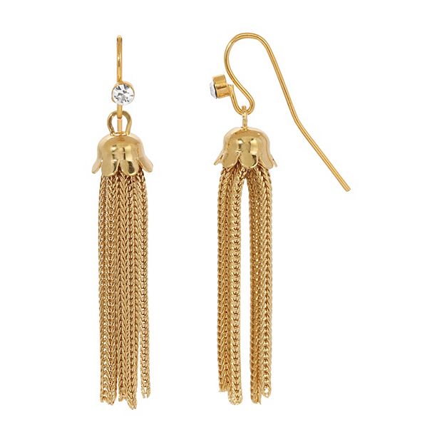 1928 Gold Tone Simulated Crystal Accented Tassel Drop Earring Very well made.