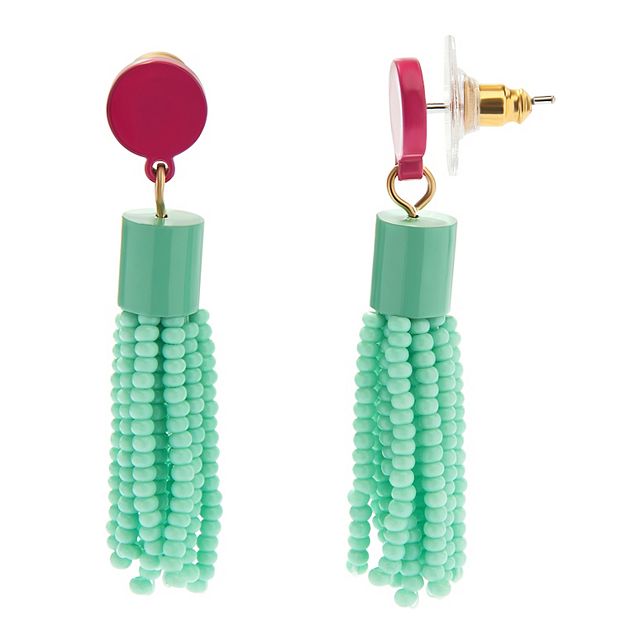 LC Lauren Conrad Gold Tone Fuchsia and Turquoise Seed Bead Tassel Very well made.