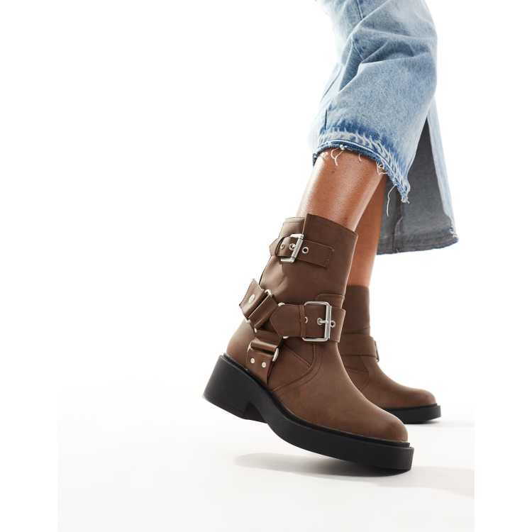ASOS DESIGN Aim Biker Stiefel in Braun mit Gurtdetail ASOS Very well made.