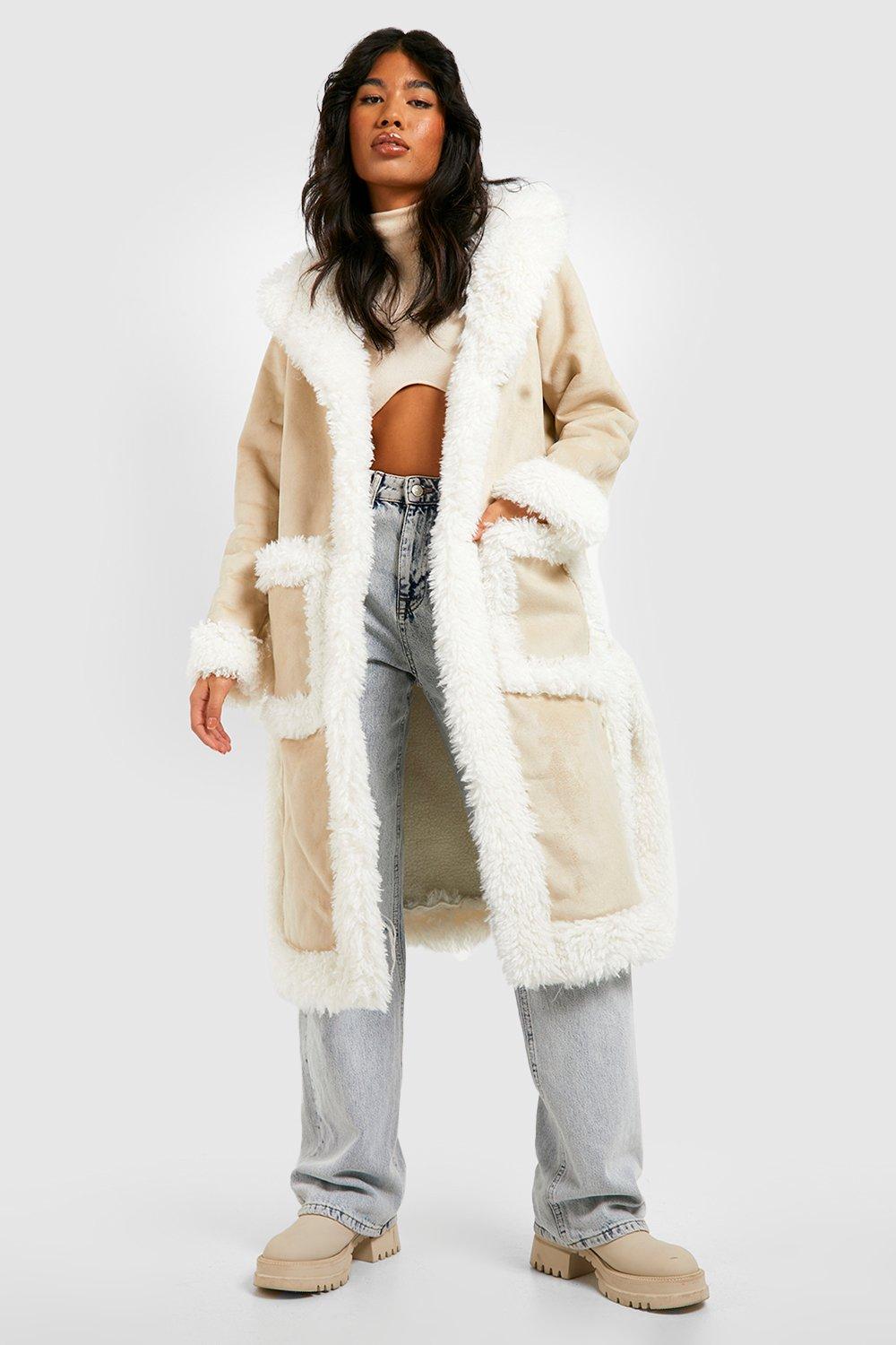 Women s Faux Fur Trim Suedette Coat Boohoo UK Very well made.