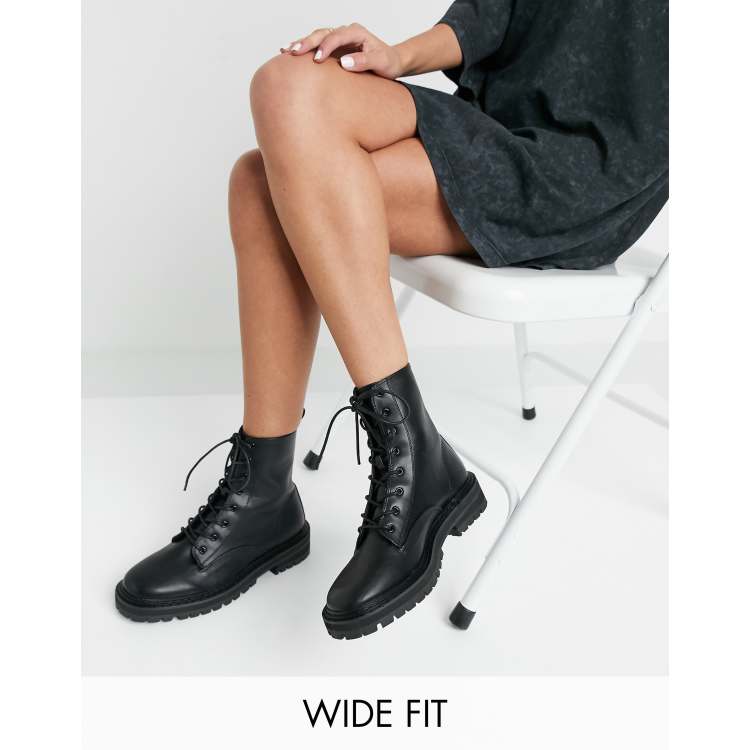 Wide Fit Schwarze flache Ankle Boots mit Schn rung Very well made.