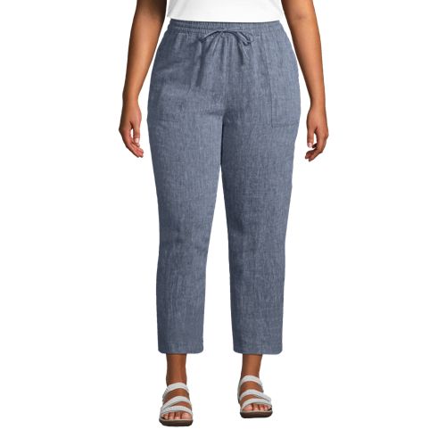 Lands End Women s Plus Size High Rise Elastic Back Wide Leg Linen Very well made.