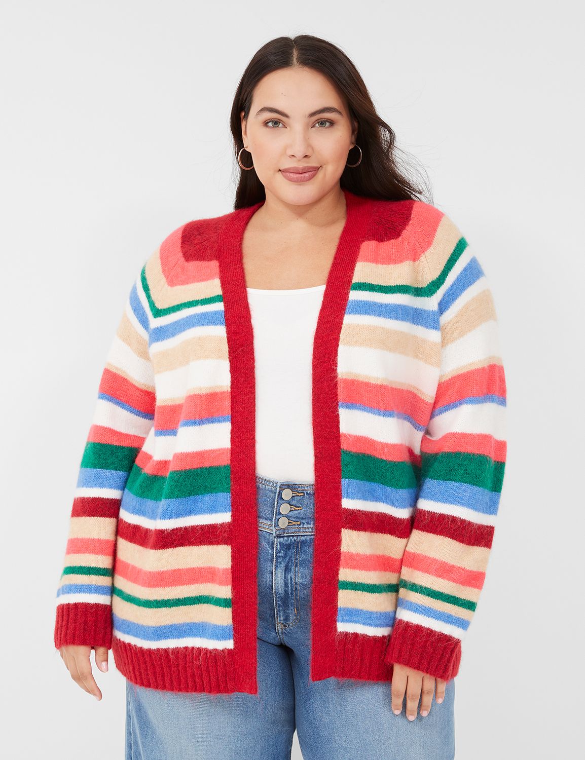 Long Open Front Striped Cardigan LaneBryant Very well made.