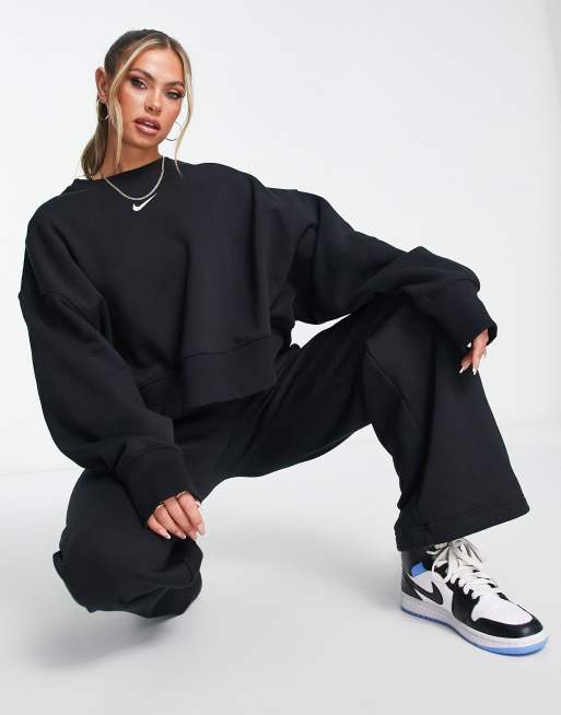 Nike Extra Oversize Sweatshirt in Schwarz und Leinenwei mit kleinem Swoosh Logo und kurzem Schnitt Very well made.