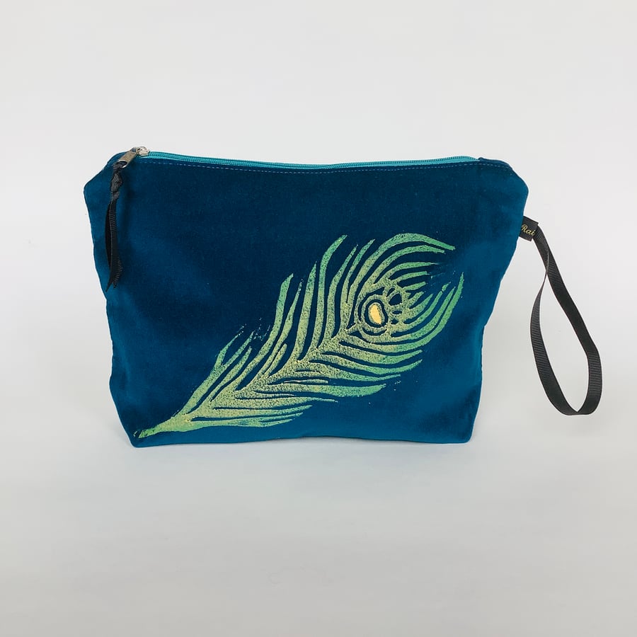 Teal velvet Large Peacock Feather makeup bag Folksy Very well made.