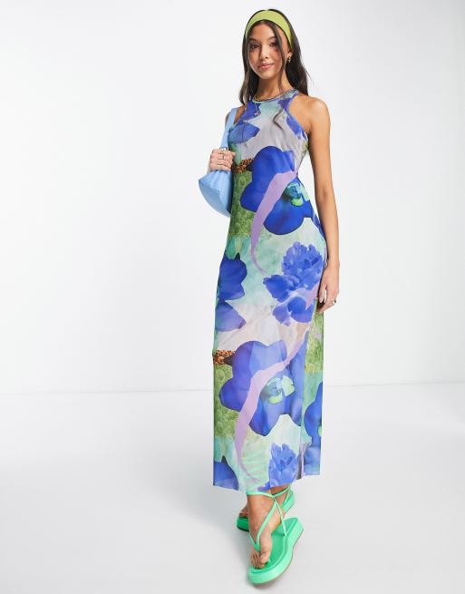 Monki tank dress in blue floral Very well made.