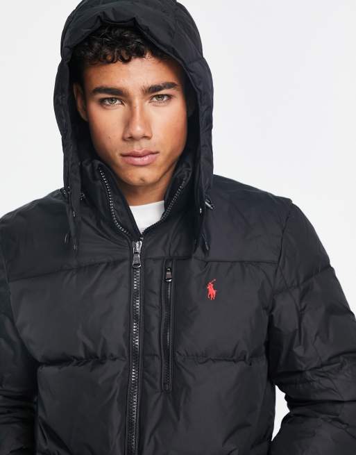 Polo Ralph Lauren Pufferjacke in Schwarz mit Daunenf llung und Kapuze Very well made.
