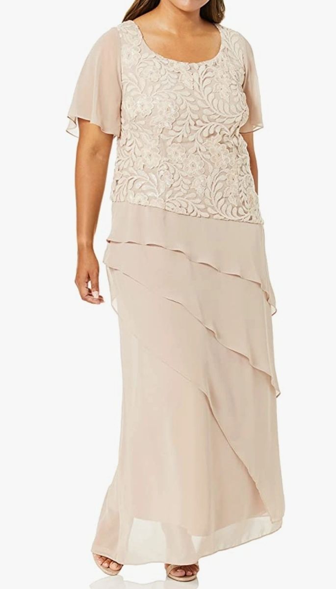 Le Bos Plus Size Embroidered Stretch Lace Square Neck 3 4 Sleeve 2 Piece Jacket Dress Very well made.