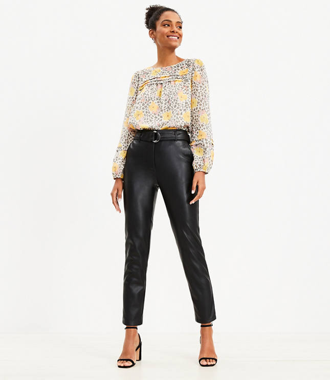 Belted Slim Taper Pants in Faux Leather Very well made.