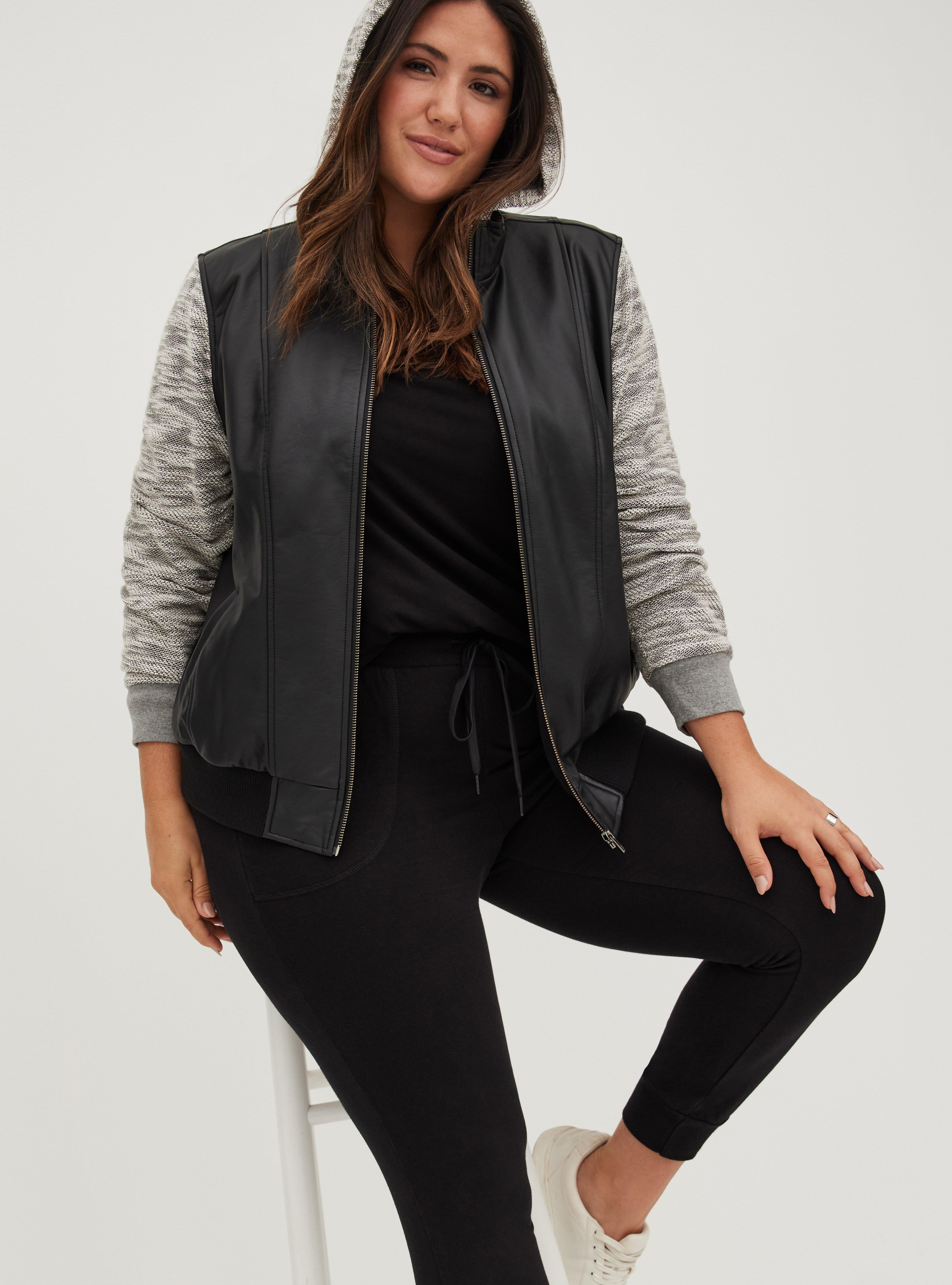 Plus Size Black Faux Leather Marled Grey Terry Bomber Jacket Very well made.