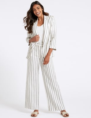 Pure Linen Striped Wide Leg Flared Trousers M S Collection M S Very well made.