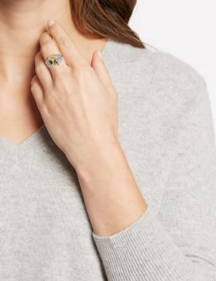 Platinum Plated Round Stone Ring M S Collection M S Very well made.