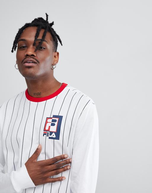 Fila Maglia bianca a maniche lunghe a righe con logo e riga nera Very well made.
