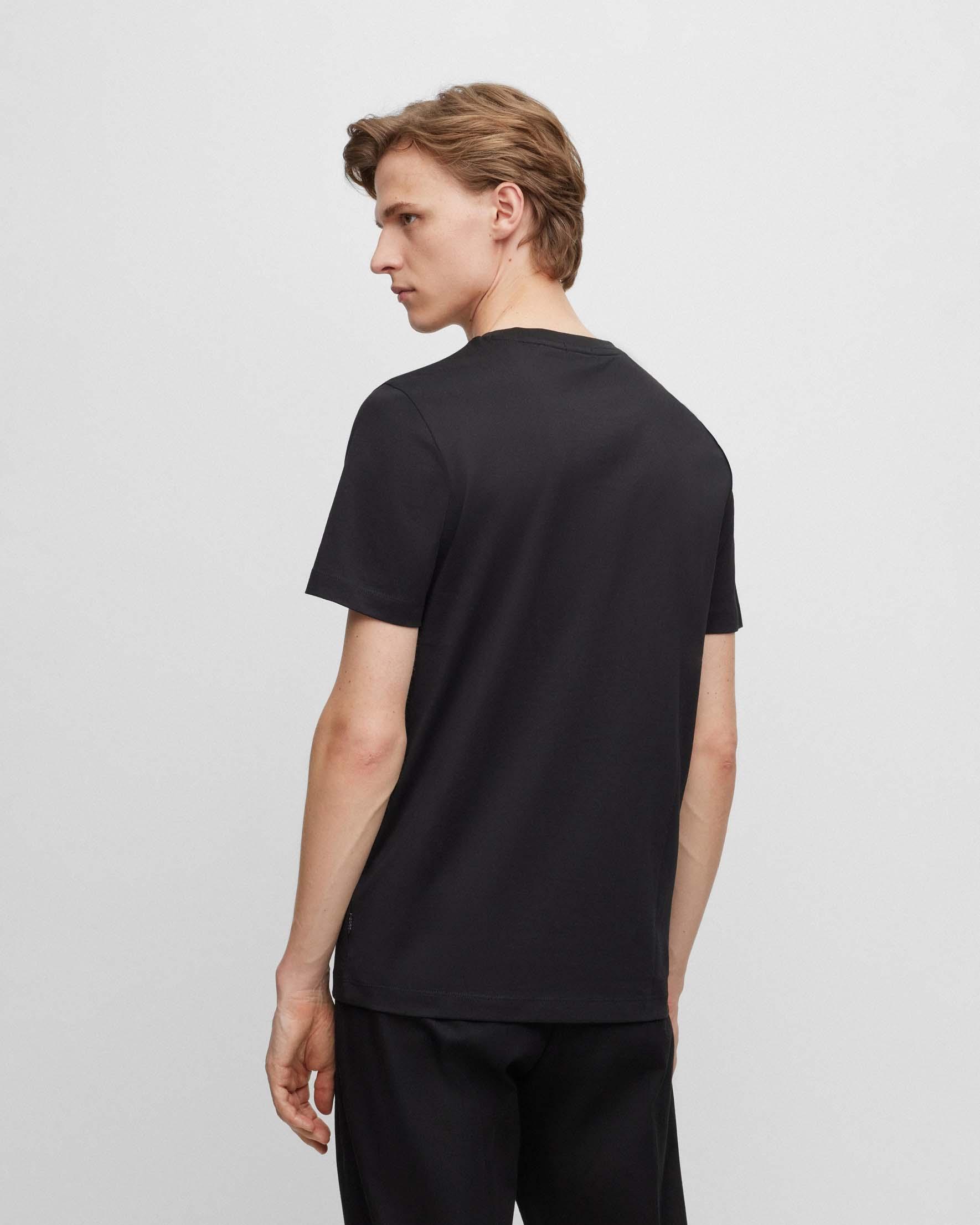 T shirt blu mezza manica con doppia fascia cammello e logo bianco Very well made.