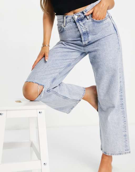 Mango straight jeans with knee rip in light blue Very well made.