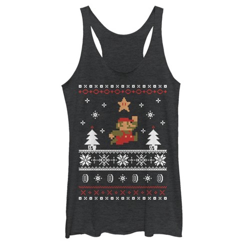 Women s Nintendo Mario Ugly Christmas Sweater Racerback Tank Top Very well made.