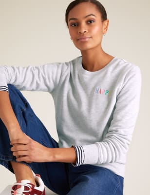 Pure Cotton Happy Slogan Sweatshirt M S Collection M S Very well made.