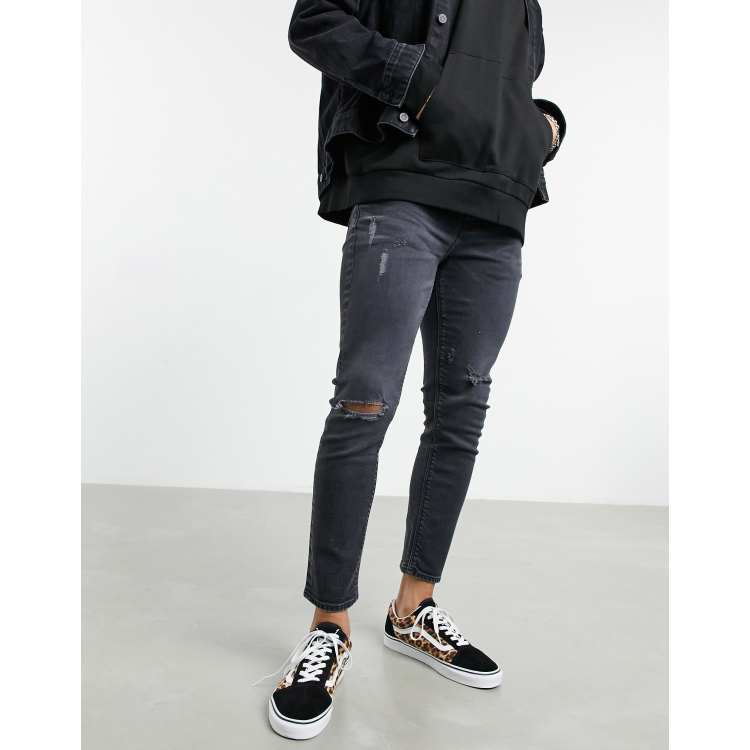 ASOS DESIGN cropped skinny jeans in black wash with rips ASOS Very well made.