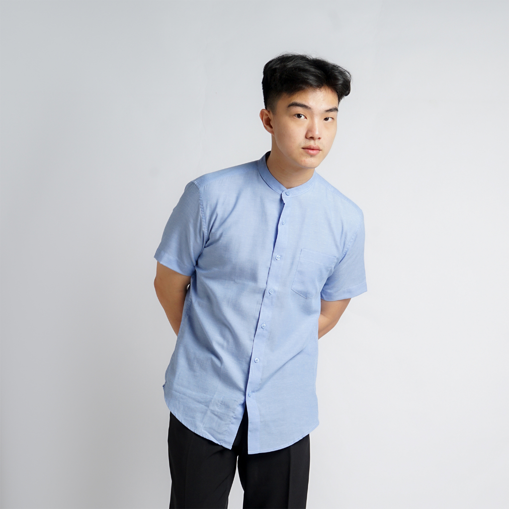 KEMEJA Men s sky blue mandarin Collar Short Sleeve Shirt Very well made.
