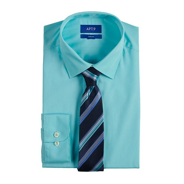 Men s Apt. 9 Slim Fit Spread Collar Dress Shirt Tie Set Very well made.