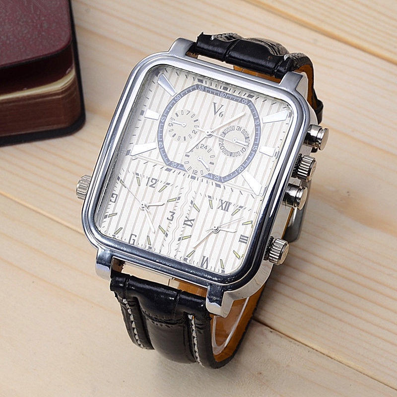 Hip hop Men s Watch Square Big Dial Watch 3 Time Zone Novel Face Dial Stainless Steel Quartz Leather Strap Watches Very well made.
