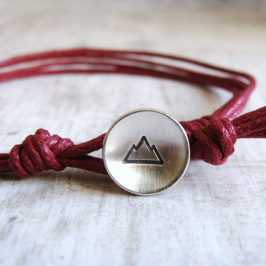 Sterling Silver Mountain Button Burgundy Red Cotton Cord Unisex Men s Bracelet Very well made.