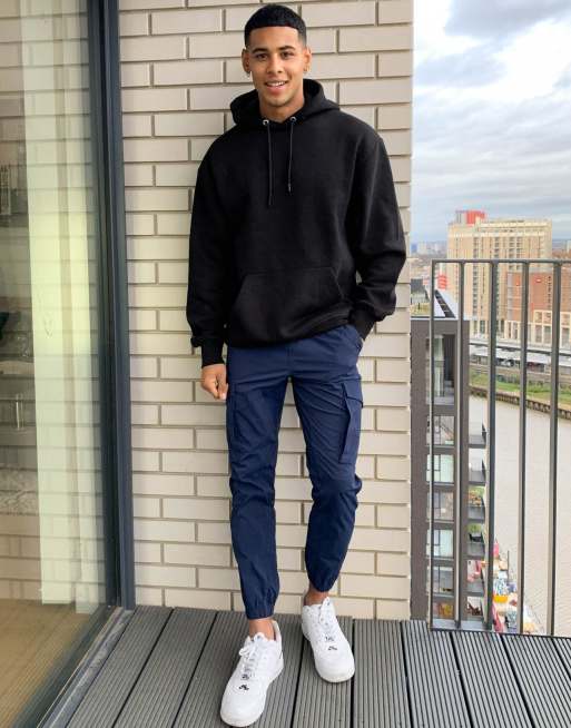 ASOS DESIGN tapered cargo pants in navy Very well made.