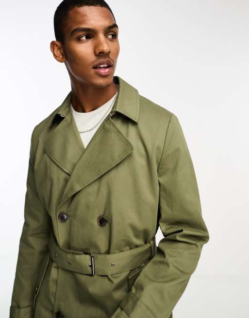 ASOS DESIGN rain resistant double breasted trench coat in olive Very well made.