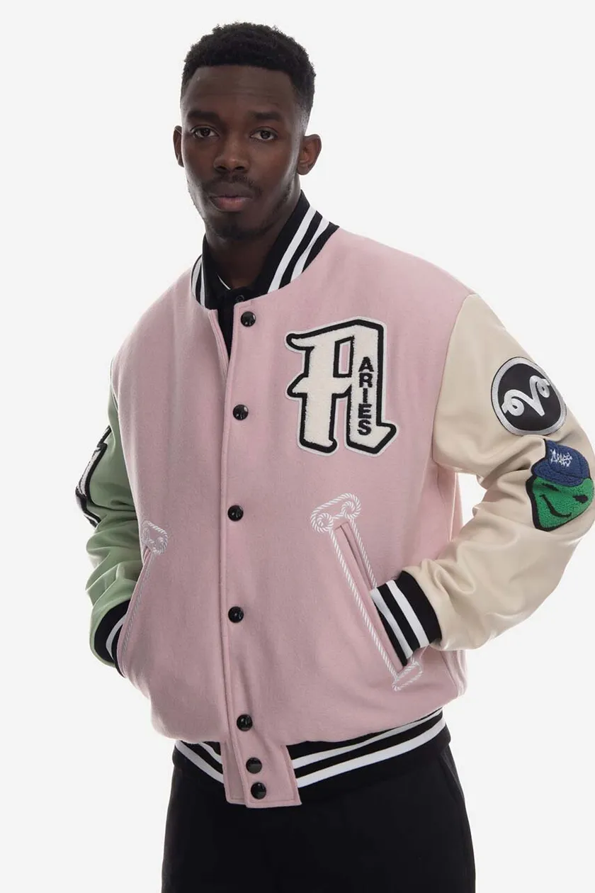 Aries bomber jacket men s pink color Aries Varsity Jacket AR70200 Very well made.