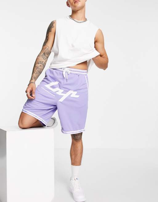 Liquor N Poker retro basketball shorts in purple with logo print and white piping Very well made.