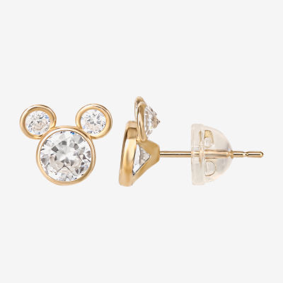 White Cubic Zirconia 14K Gold 8mm Mickey Mouse Stud Earrings Very well made.