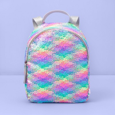 Justice Rainbow Unicorn Flip Sequin Mini Backpack Rucksack Horn Ears 12X8X4 NEW Very well made.