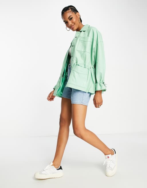 Muubaa oversized drawstring leather jacket in mint Very well made.