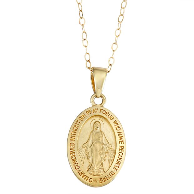 14k Gold Miraculous Medal Pendant Necklace Very well made.