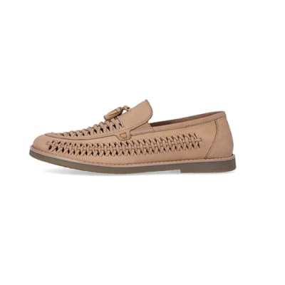 Vintage Men Dark Brown Italian Made Woven Loafers Size 7.5m Very well made.