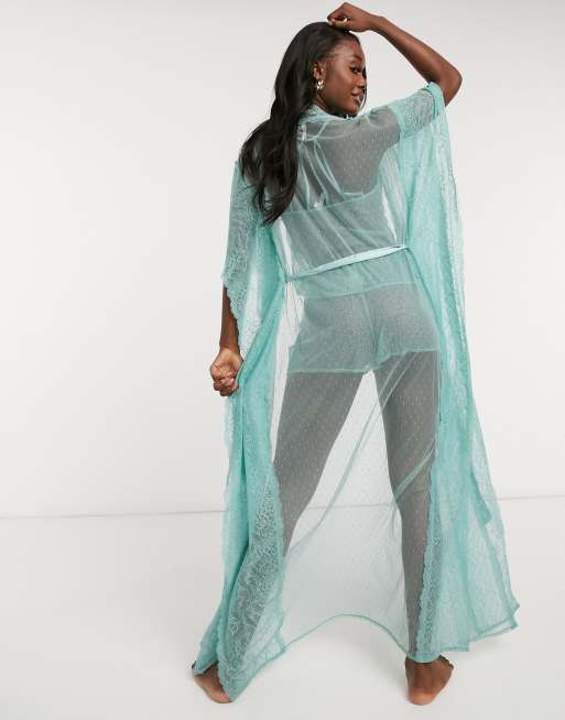 Women secret sheer dobby mesh maxi kimono in mint Very well made.