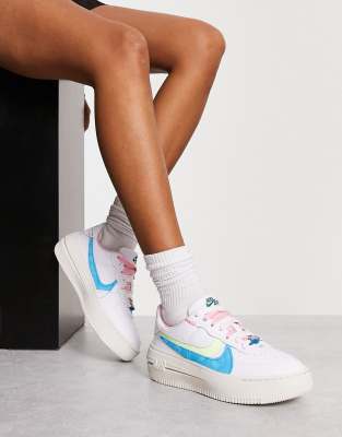 Nike Air Force 1 PLT.AF.ORM sneakers in sail white and baltic blue Very well made.