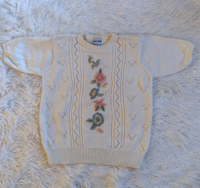 Vintage Alfred Dunner Sweater Off White floral rose embroidery Very well made.