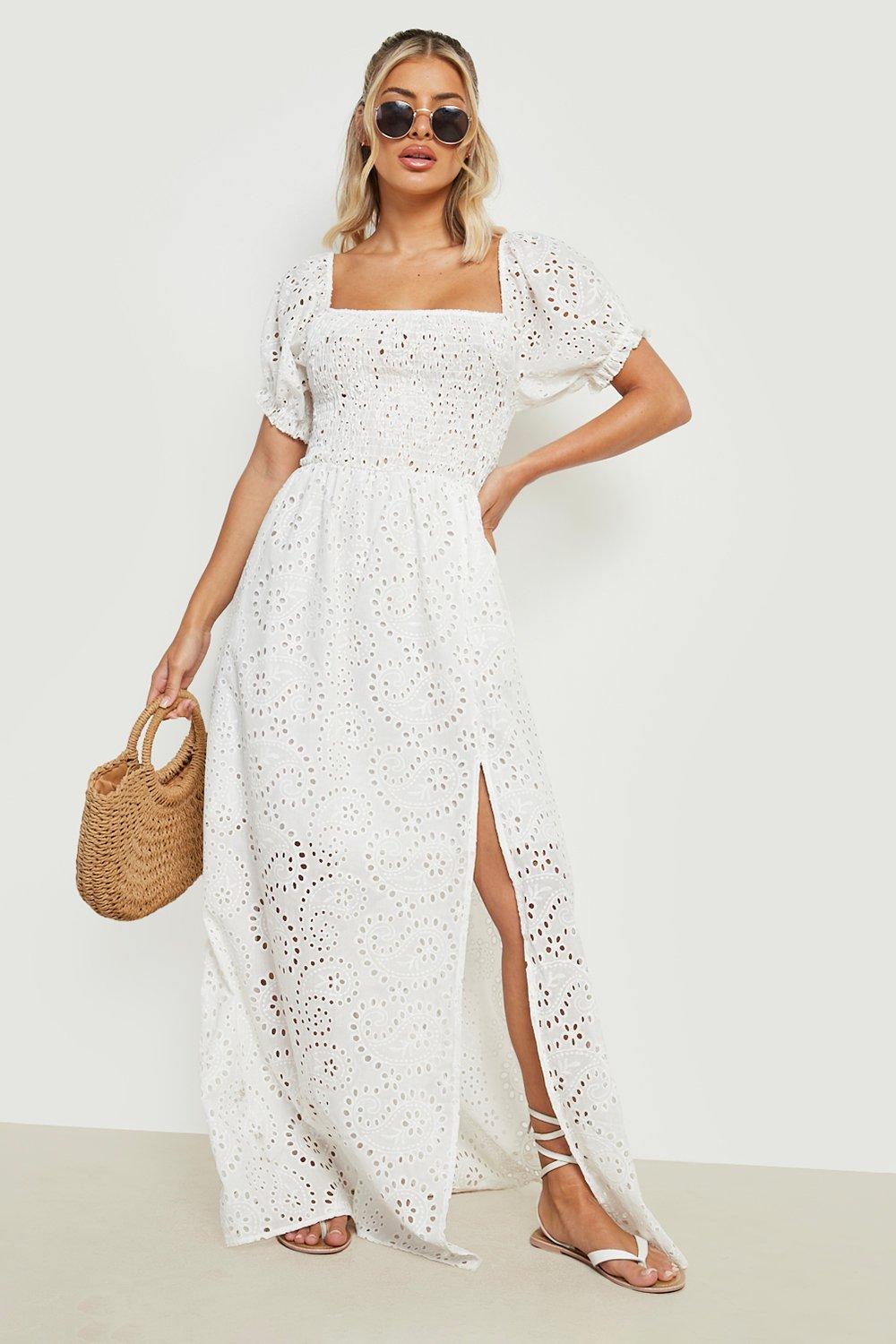 Vestito maxi in pizzo sangallo increspato con maniche a sbuffo Very well made.