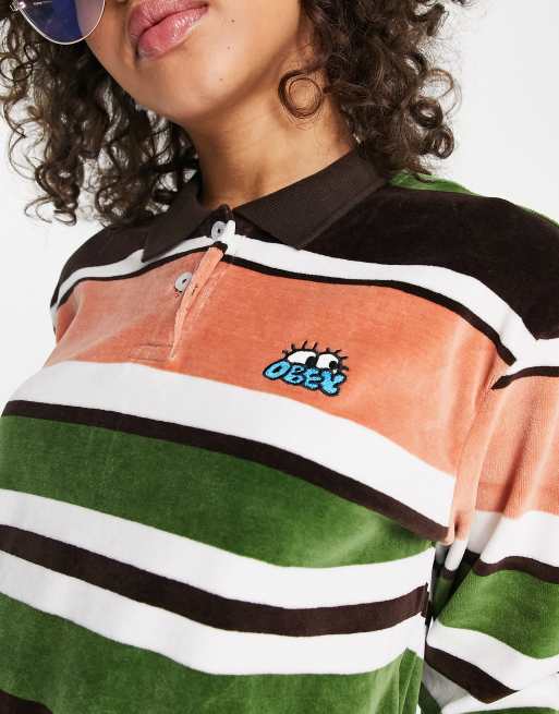 Obey relaxed boxy fit ruby polo in stripe velvet Very well made.