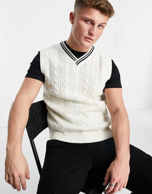 Jack Jones Originals knitted cable vest with v neck in off white Very well made.