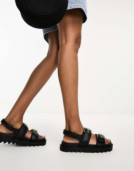 Stradivarius Wide Fit cross strap buckle chunky sandal in black Very well made.