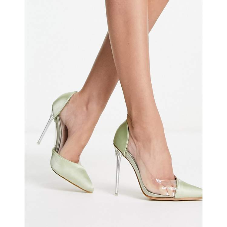 Be Mine Enora mix heeled shoes in olive satin ASOS Very well made.