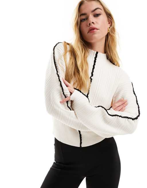 Other Stories mono colour block merino wool and cotton blend sweater in off white Very well made.