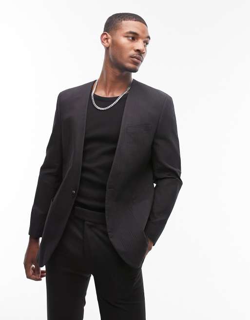 Topman ribbed collarless oversized suit jacket in black Very well made.