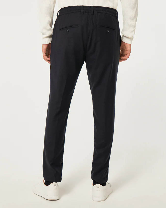 Pantaloni blu in flanella di lana tecnica stretch con coulisse in vita Very well made.