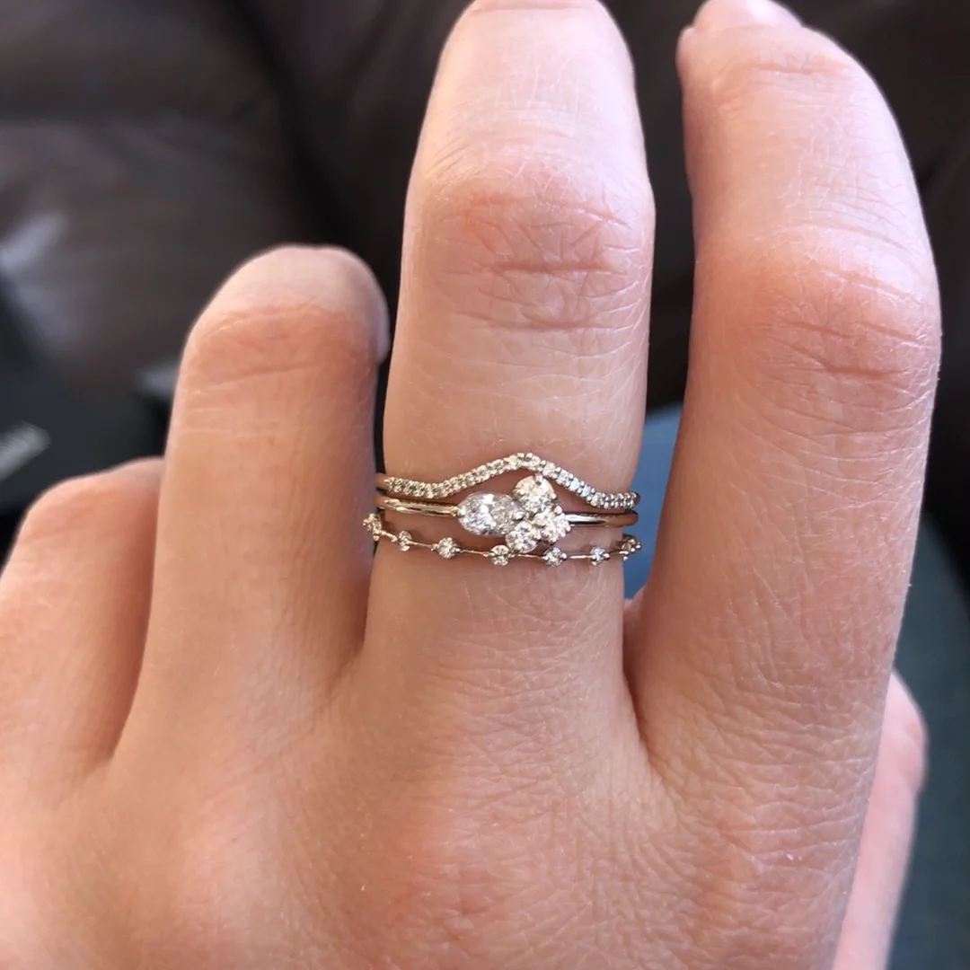 Petite Diamond Distance Band Snow Owl Mini Cluster Ring and Fitted Lady s Slipper Band Very well made.