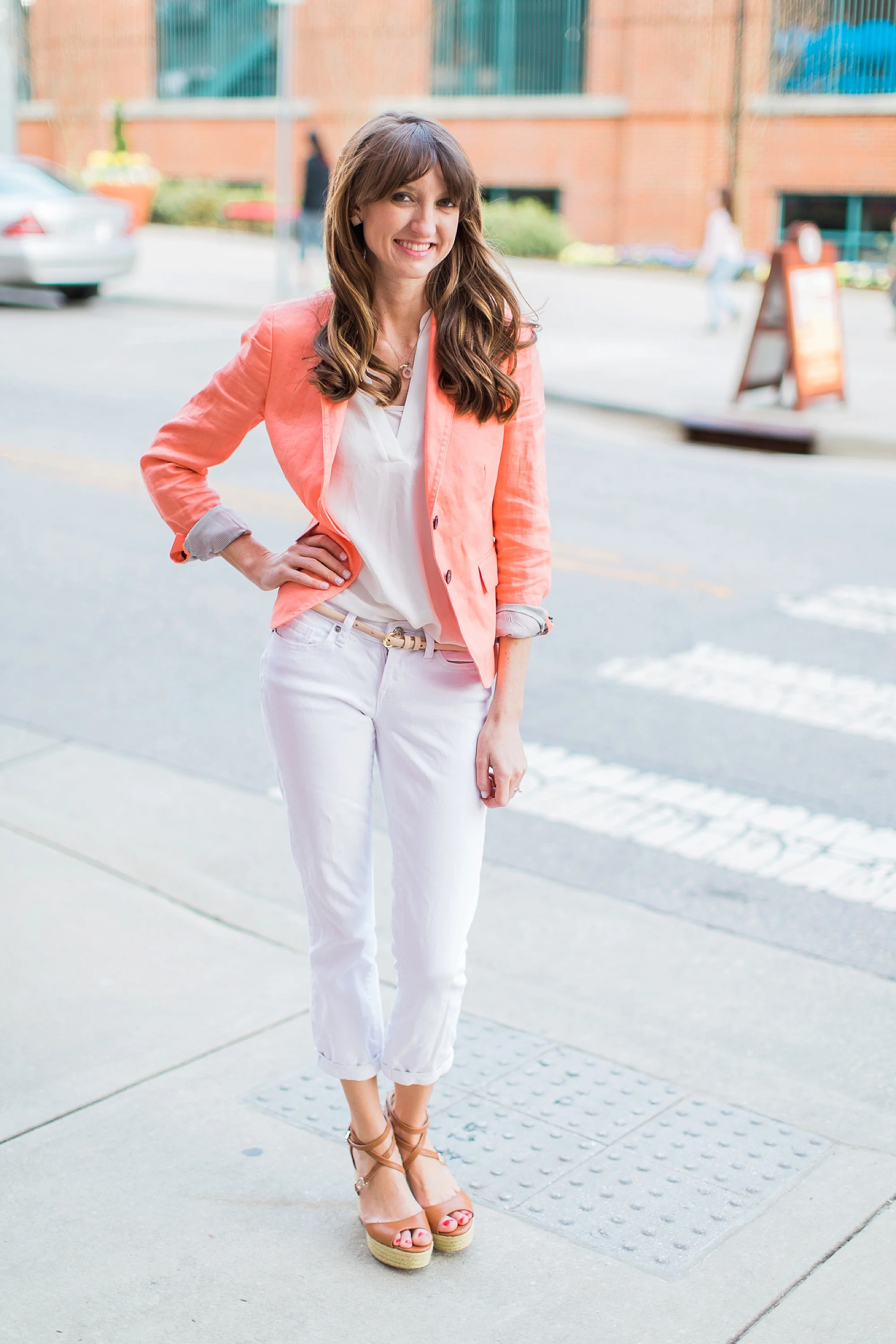 Fashion Friday Pink Blazer White Jeans North Carolina Wedding Very well made.